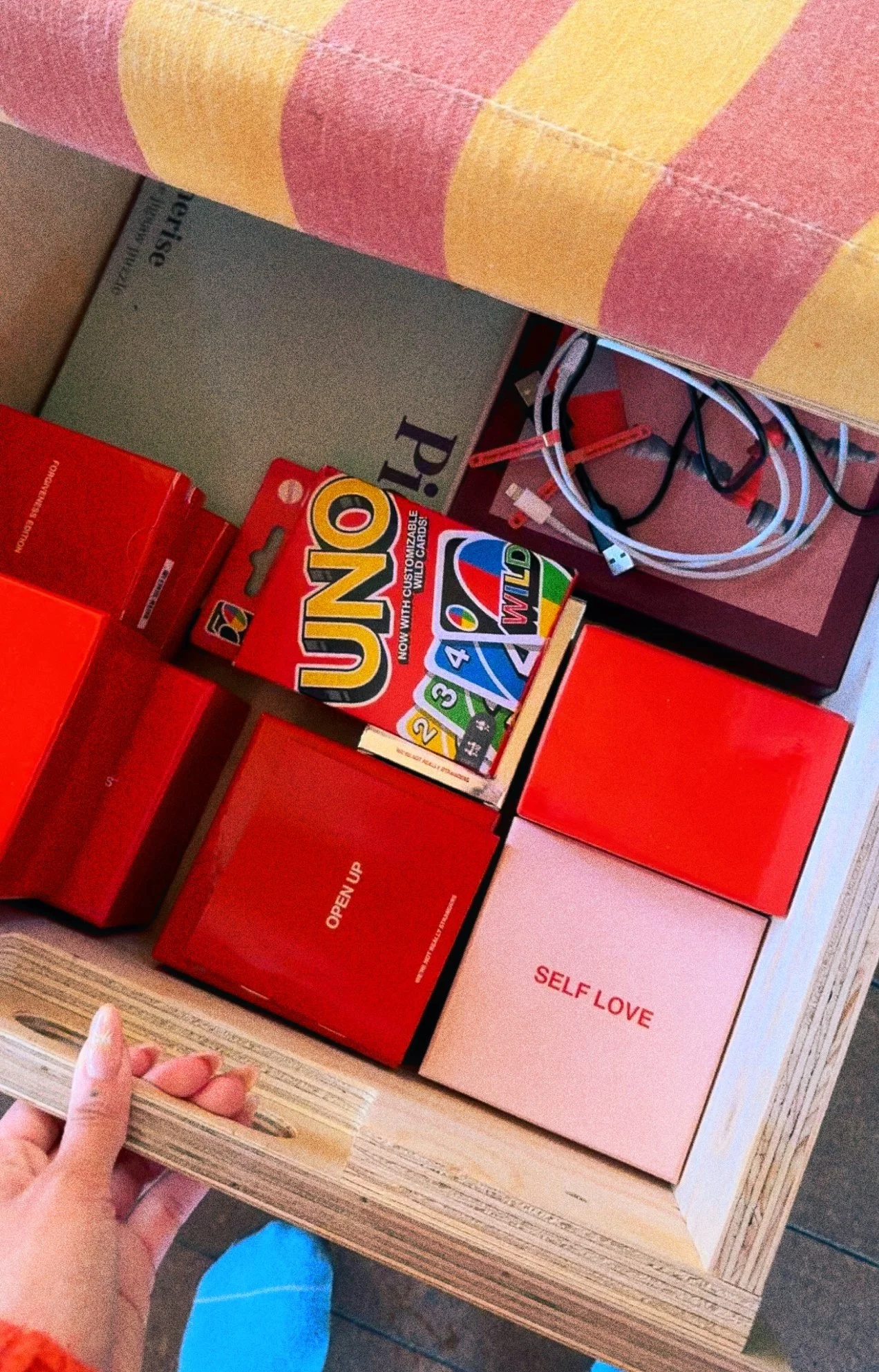 I made plans to put my digital devices in some phone jail when I got to the cabin. As someone who spends a painful amount of time on their phone and social media, I thought this would be a struggle, but leaving my phone alone was automatic. I don’t think i’ve experienced the level of quietness I did in the cabin before. i almost felt that i was hypnotised by it’s aura or something. I found my breaths and thoughts becoming deeper and slower, which is quite something for someone with ADHD who didn’t take any medication during their stay. I didn’t stay off my phone completely but only picked it up to respond to family or edit some photos. One of my favourite things provided in the cabin is the games drawer. It’s under the bench, and it is filled with games that are of a slower pace; chess and puzzles. However, the one that gave me the most joy was a game i’d never heard of before; ‘We’re Not Really Strangers’. It’s a question-based game, and they had packs for different guests; friends, family, couples including additional breakup and forgiveness editions. There was even a self-love pack, for any solo guests wishing to spend their cabin time reflecting and realligning themselves. Konrad and I played it whilst I made breakfast, and it gave us so many laughs answering each others questions about the last 8 years. It also encouraged us to say things to each other we definitely don’t say often enough, and revelling in that made our stay even more contented. Althought the weather didn’t allow it, I wish I was able to take advantage of the yoga mats provided for a little sunrise salutation on the deck outside - maybe next time!